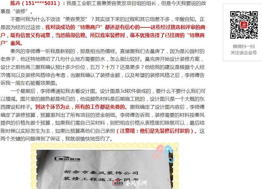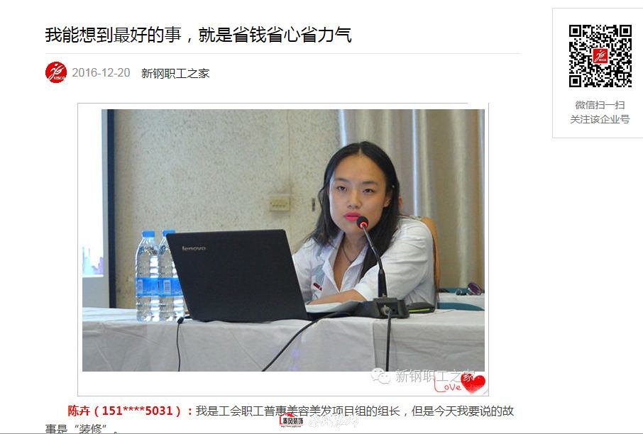 日前,新鋼職工之家 舉辦“我與會(huì)員服務(wù)卡的故事”征文活動(dòng)。該工會(huì)職工普惠項(xiàng)目中的“美容美發(fā)項(xiàng)目組”組長(zhǎng)陳女士參與了活動(dòng),如實(shí)講述了她真實(shí)的裝修過(guò)程。